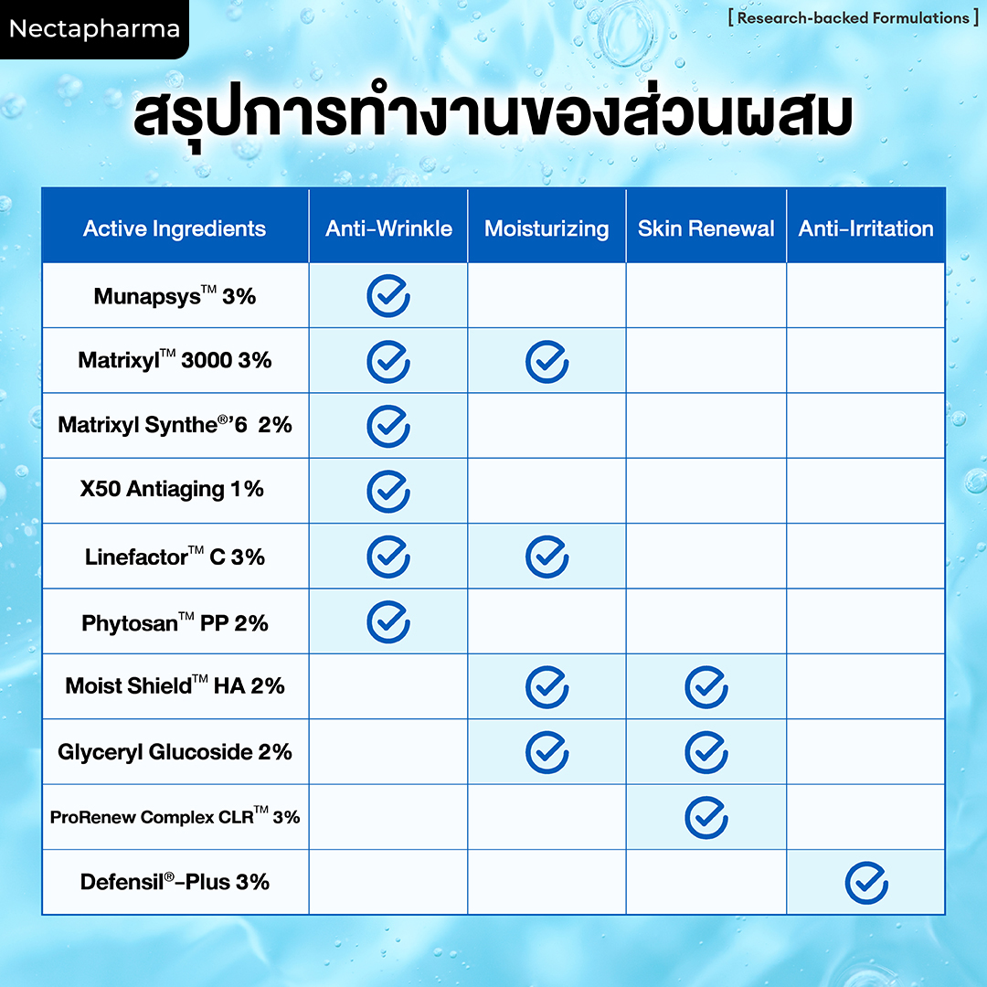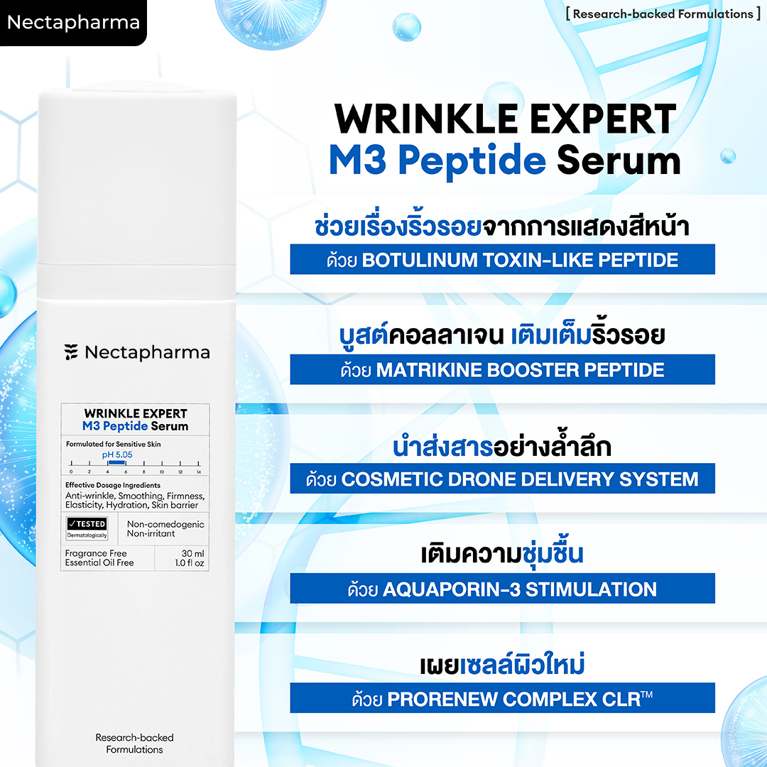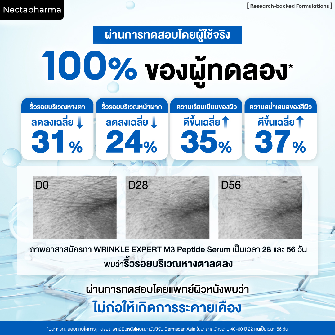 100% ของผู้ทดลองพบว่าเซรั่มเปปไทด์ Nectapharma ช่วยลดริ้วรอยและฟื้นฟูผิวได้อย่างมีประสิทธิภาพ