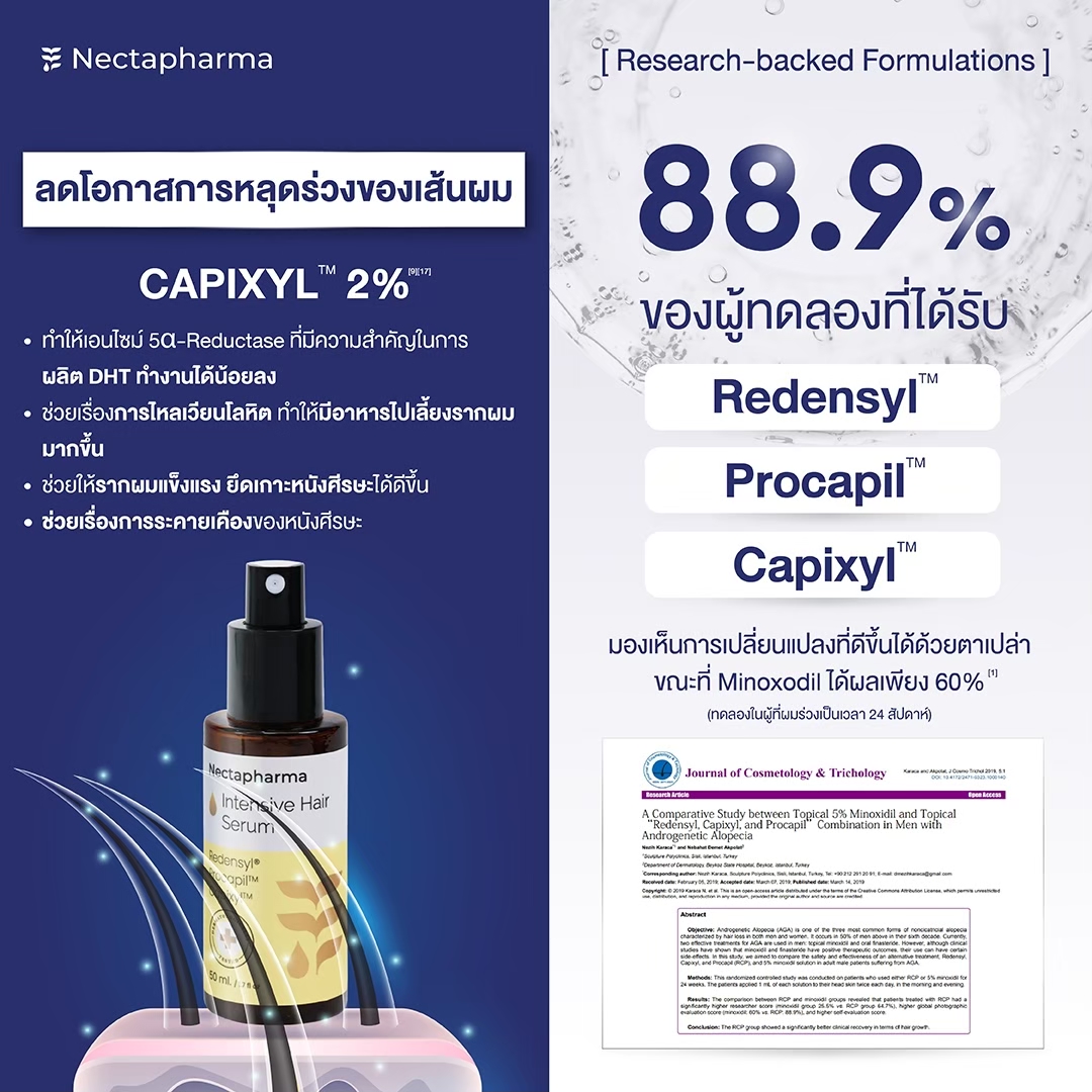 จากผลลัพธ์การศึกษา เซรั่มลดผมร่วง Intensive Hair Serum จึงเหมาะกับผู้ที่มีปัญหา
